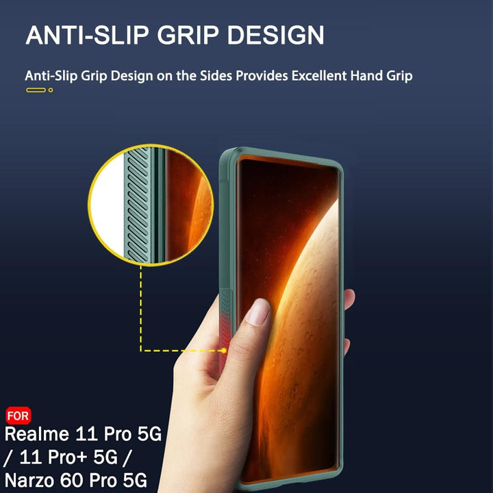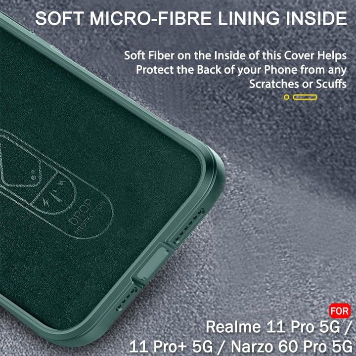 Back Cover Case for Realme 11 Pro | 11 Pro Plus | Narzo 60 Pro 5G | Matte Soft Flexible Liquid Silicon Military Grade Shockproof Bumper Anti-Slip Grip Micro-Fibre Cloth On Inner Side