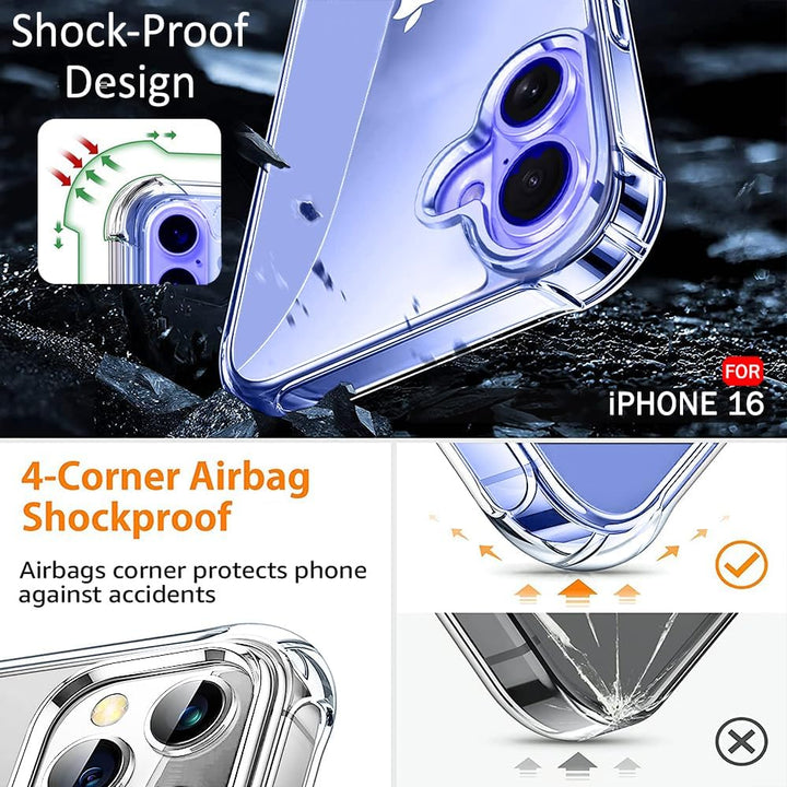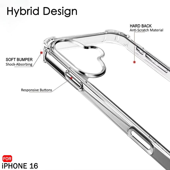 MOBILOVE Back Cover Case for iPhone 16 | Shockproof Ultra Hybrid with Drop Protection Corners Comes with Camera Protection Anti-Scratch Case for iPhone 16 (TPU | Crystal Clear)