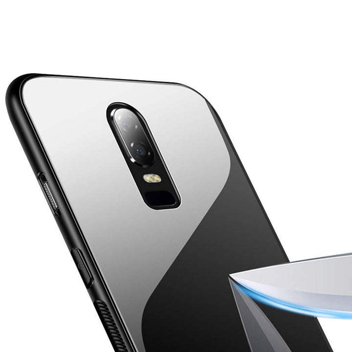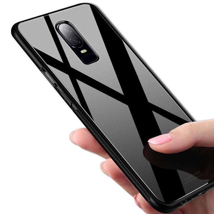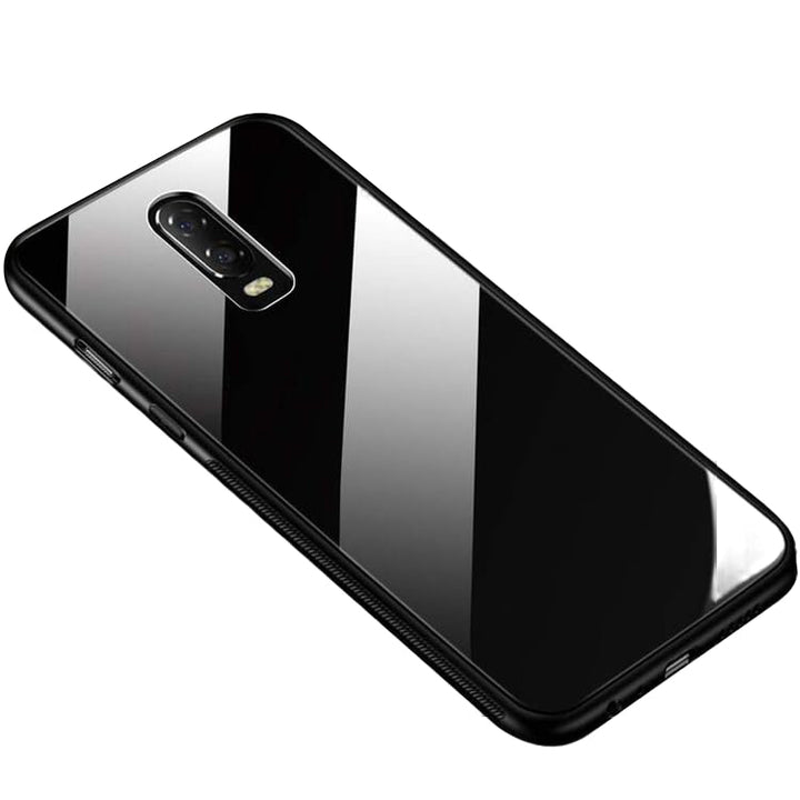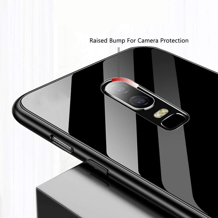 MOBILOVE Back Cover Case for OnePlus 6 | Luxury Toughened Glass Cover with Shockproof Soft Silicone Side Case (Hard Case) (Black)