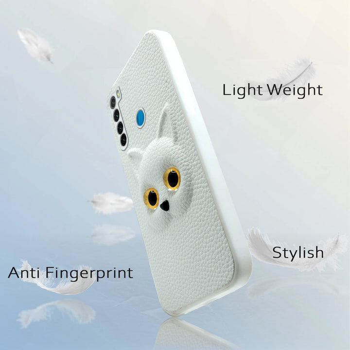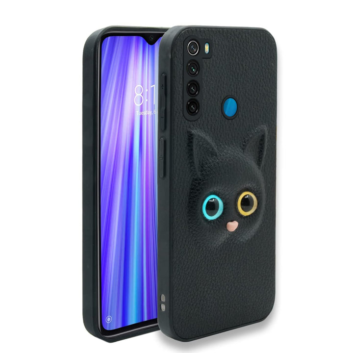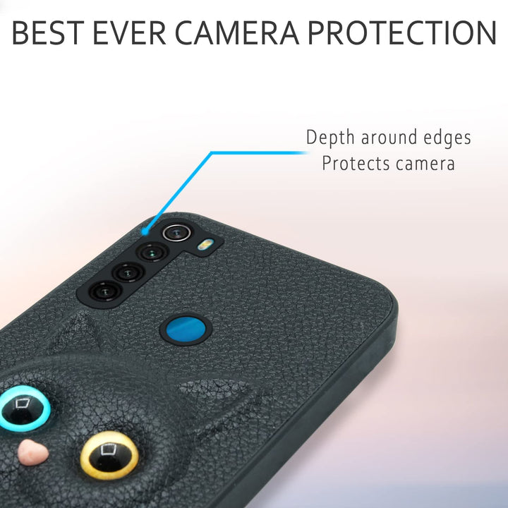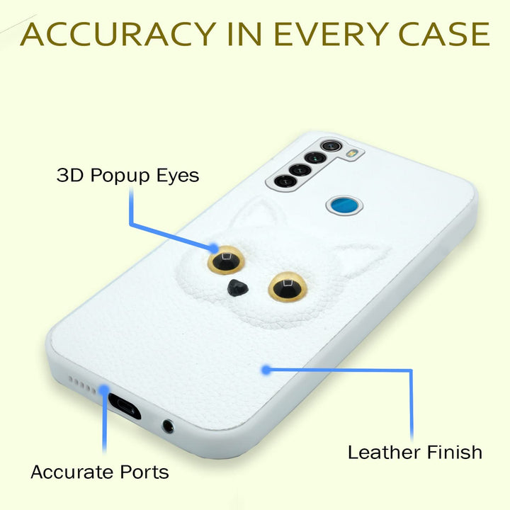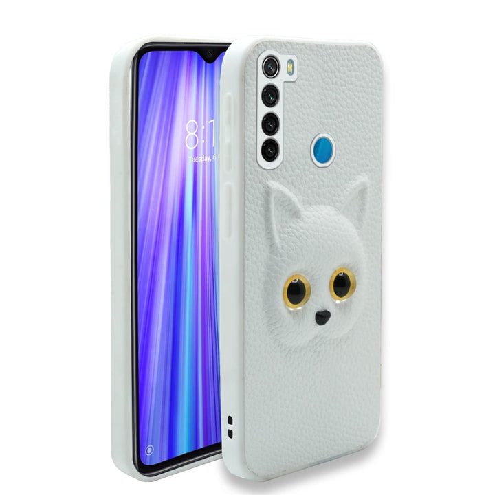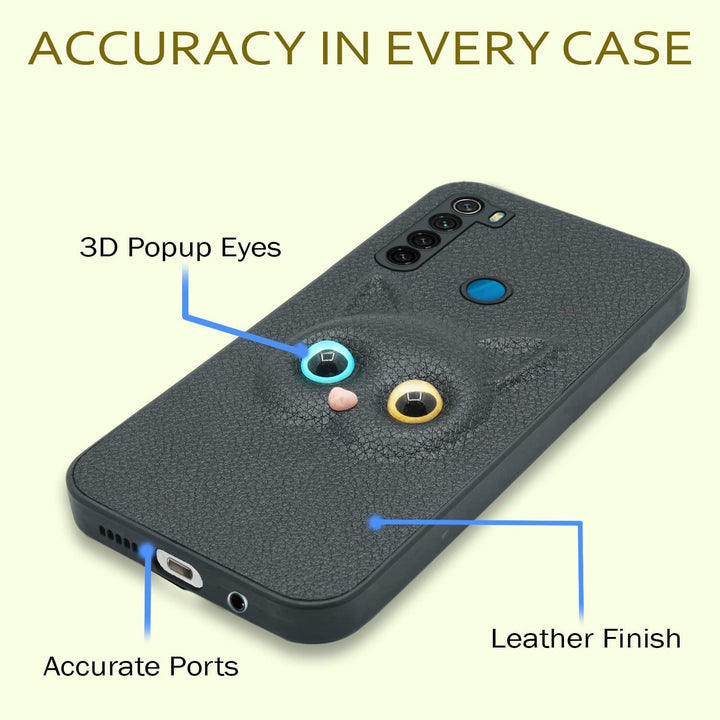 MOBILOVE Back Cover for Mi Redmi Note 8 | Cute Cat Kitty Slim Soft PU Leather Case | 3D Effect with Colored Eye and Camera Protection