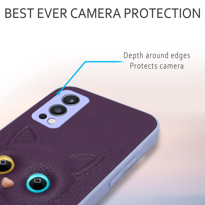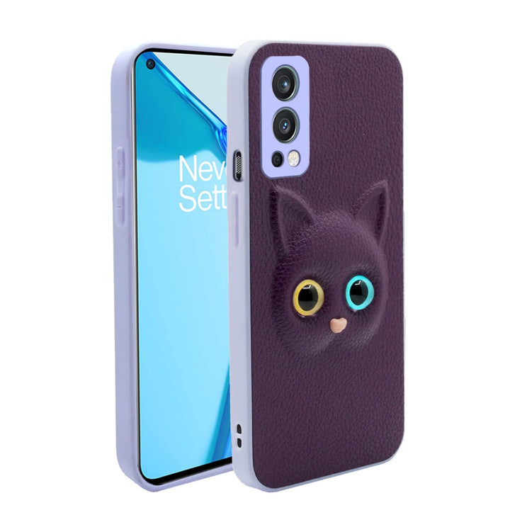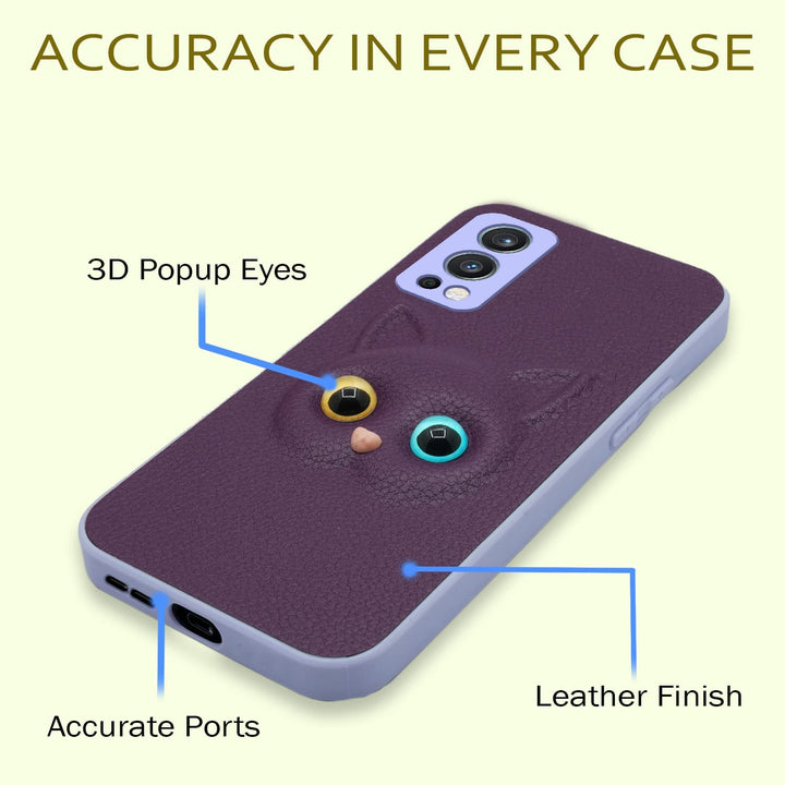 MOBILOVE Back Cover for OnePlus Nord 2 5G | Cute Cat Kitty Slim Soft PU Leather Case | 3D Effect with Colored Eye and Camera Protection