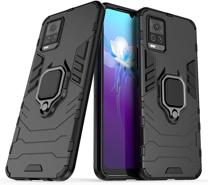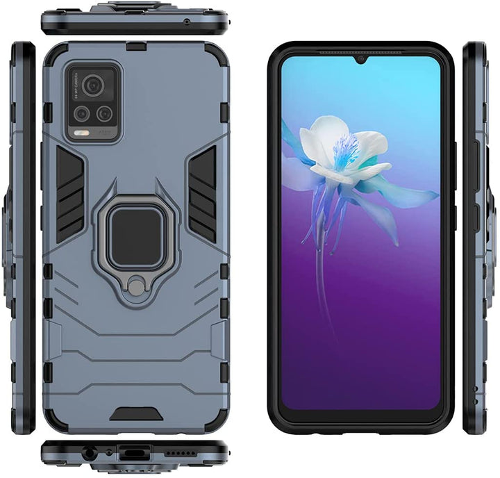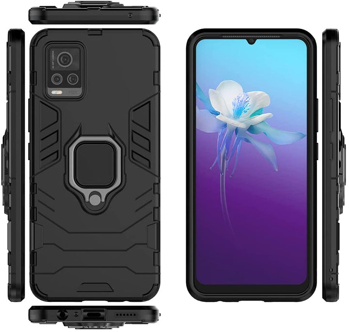 MOBILOVE Back Cover for Vivo V20 | Rotating Ring Holder & Kickstand in-Built | Dual Layer Military Grade Drop Protection | 360 Degree Protection Case