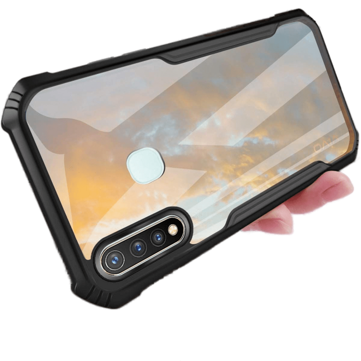 MOBILOVE Back Cover for Vivo Y19 | Vivo U20 | Vivo Y5s | Four Corner Hybrid Soft PC Anti Clear Gel TPU Bumper Case [Anti-Slip] [Shock Proof] [Scratch Resistant] (Black | Transparent)