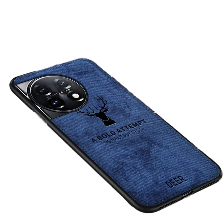 MOBILOVE Deer Pattern Cloth Texture Leather Finish Soft Fabric Case Hybrid Protective Case with Camera Protection for | OnePlus 11 5G