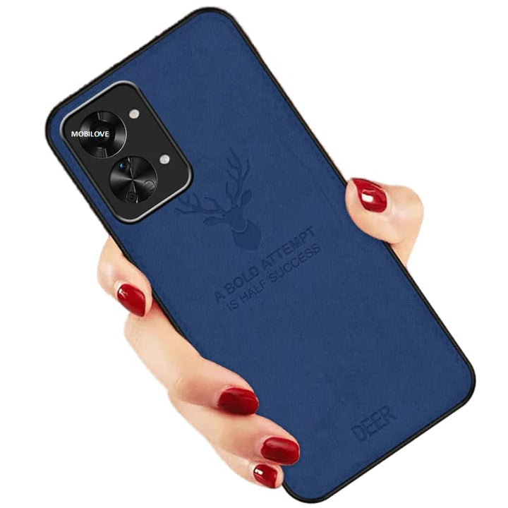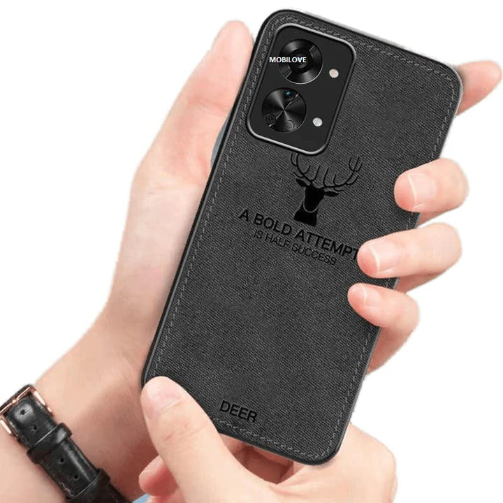 MOBILOVE Deer Pattern Cloth Texture Leather Finish Soft Fabric Case Hybrid Protective Case with Camera Protection for | OnePlus Nord 2T 5G