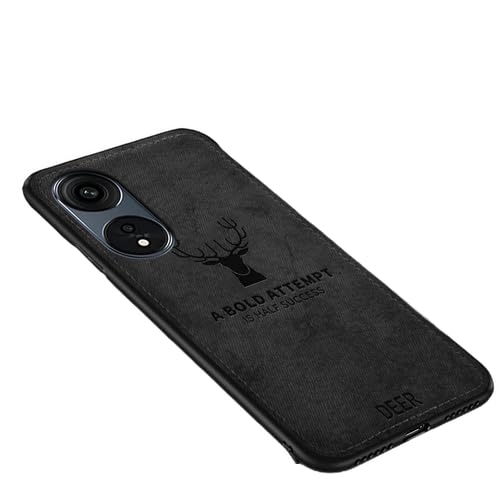 MOBILOVE Deer Pattern Cloth Texture Leather Finish Soft Fabric Case Hybrid Protective Case with Camera Protection for | Oppo A78 5G | Oppo A58 5G