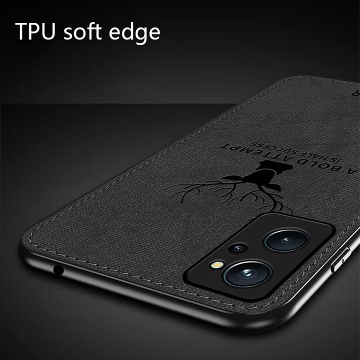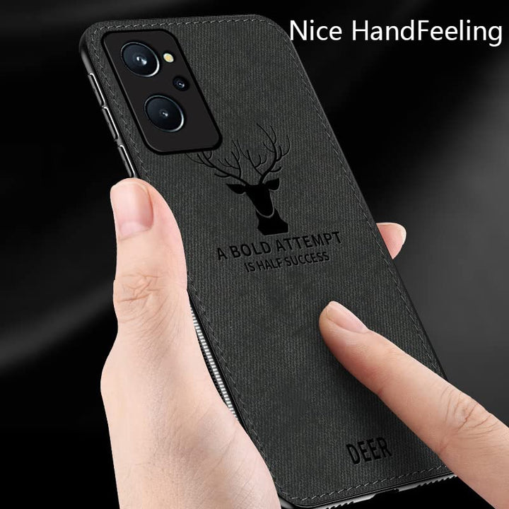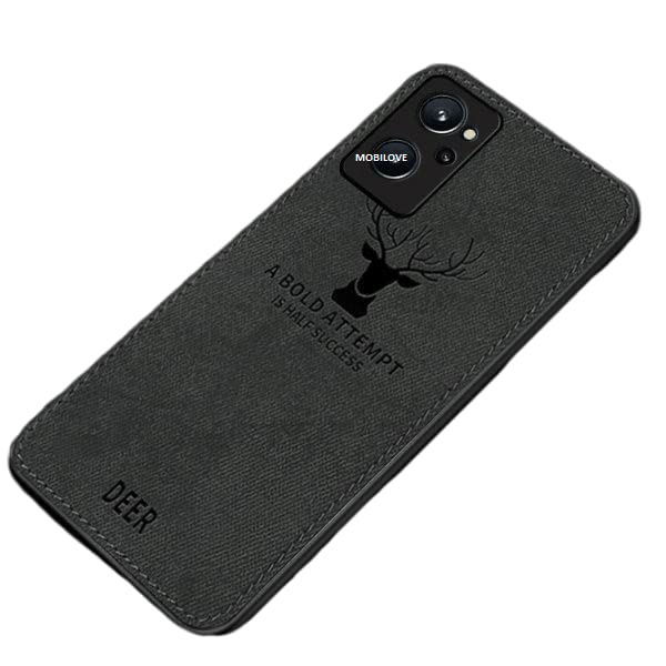 MOBILOVE Deer Pattern Cloth Texture Leather Finish Soft Fabric Case Hybrid Protective Case with Camera Protection for | Realme 9i