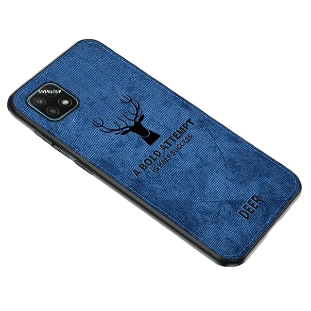 MOBILOVE Deer Pattern Cloth Texture Leather Finish Soft Fabric Case Hybrid Protective Case with Camera Protection for | Samsung Galaxy A22 5G | F42 5G