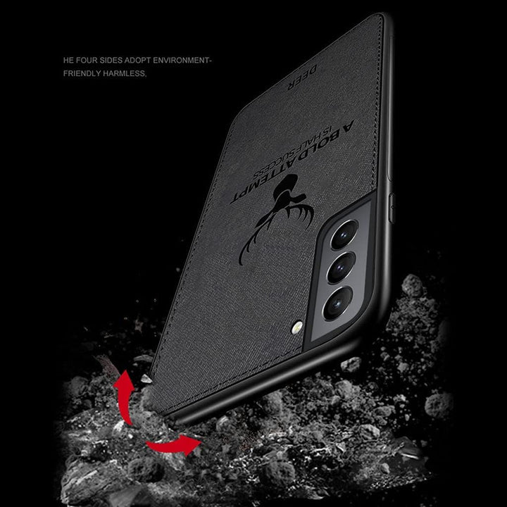 MOBILOVE Deer Pattern Cloth Texture Leather Finish Soft Fabric Case Hybrid Protective Case with Camera Protection for | Samsung Galaxy S23 5G