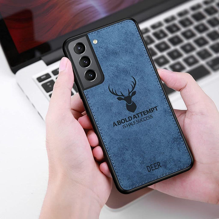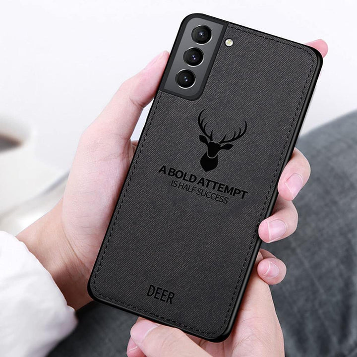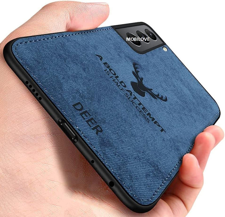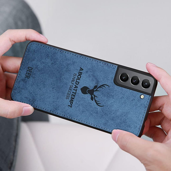 MOBILOVE Deer Pattern Cloth Texture Leather Finish Soft Fabric Case Hybrid Protective Case with Camera Protection for | Samsung Galaxy S23 Plus 5G