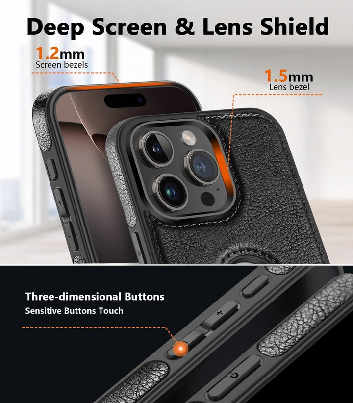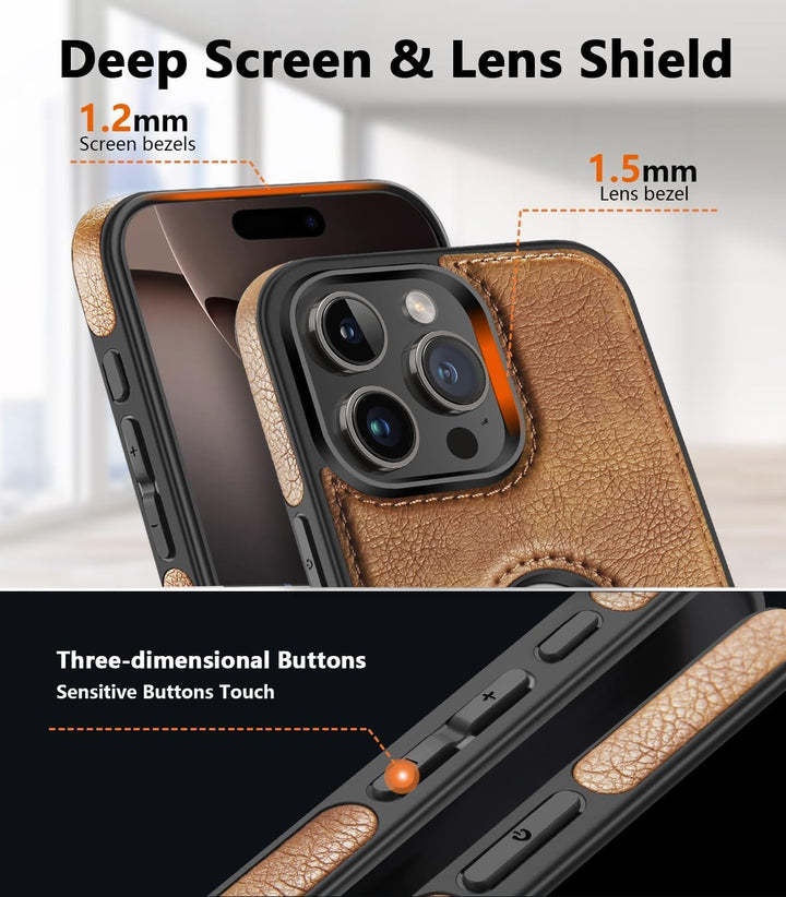 ⚡ High Quality and Full Protective: Dual-layer polycarbonate and TPU, super-strong anti-throw stitching Leather case, Luxury phone case. All buttons and corners are elevated and raised edges to lift the screen and camera lens off the surface.