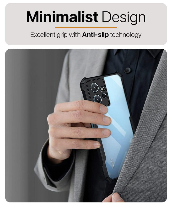 MOBILOVE Shockproof Crystal Clear Back Cover Case for Mi Redmi Note 12 4G | 360 Degree Protection | Protective Design | Hybrid Soft PC Anti Clear Gel TPU Bumper Case (Black)