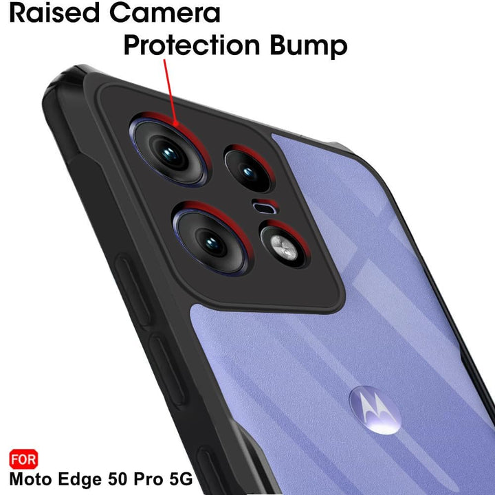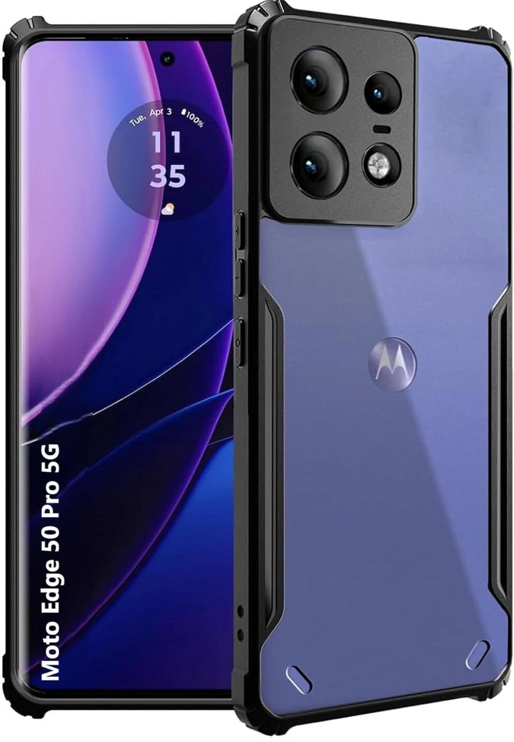 MOBILOVE Shockproof Crystal Clear Back Cover Case for Motorola Moto Edge 50 Pro 5G | 360 Degree Protection | Hybrid Soft PC Anti Clear Gel TPU Bumper Case (Black)