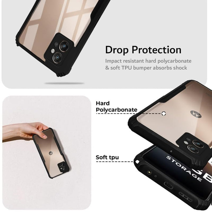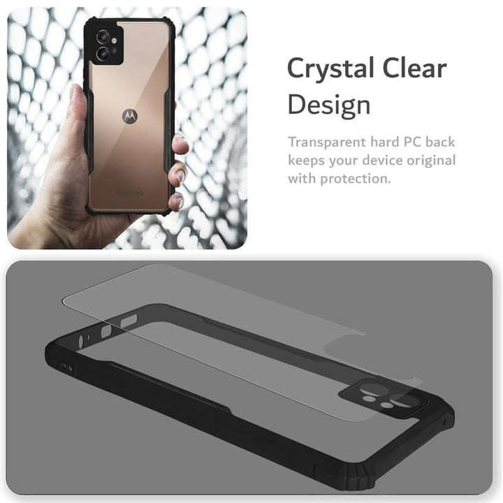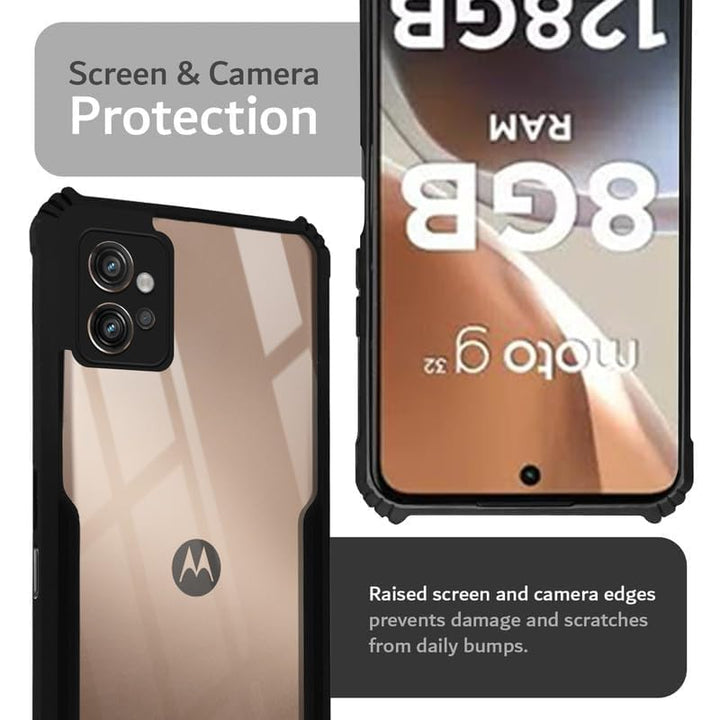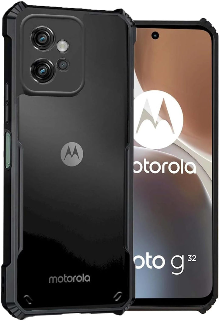 MOBILOVE Shockproof Crystal Clear Back Cover Case for Motorola Moto G32 | 360 Degree Protection | Hybrid Soft PC Anti Clear Gel TPU Bumper Case (Black)