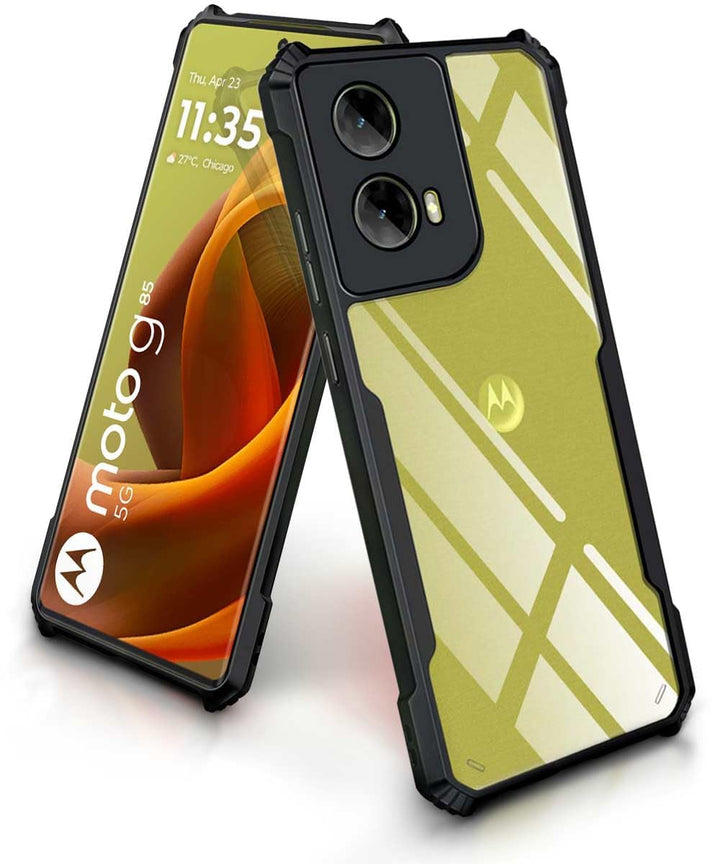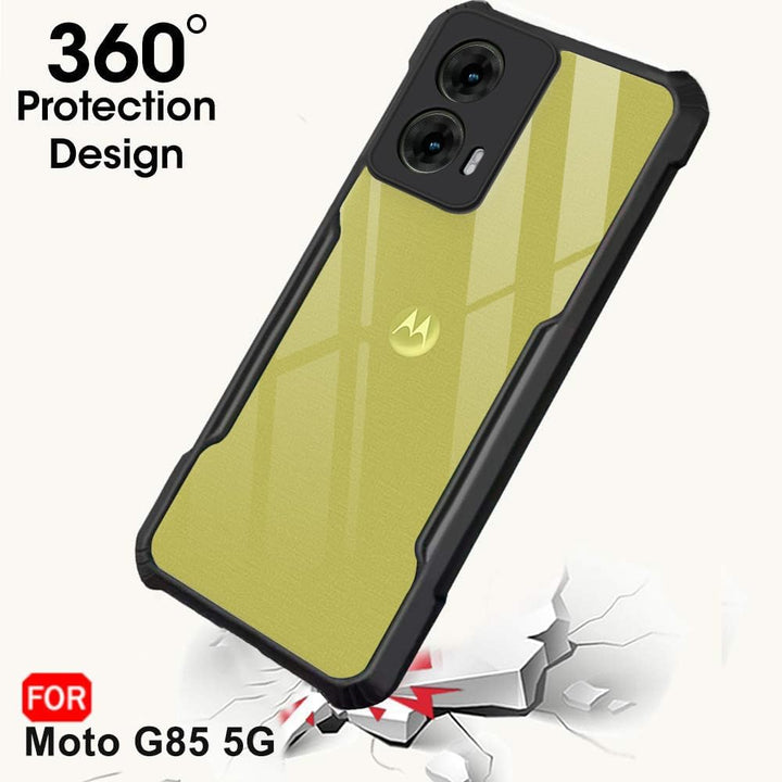 MOBILOVE Shockproof Crystal Clear Back Cover Case for Motorola Moto G85 5G | 360 Degree Protection | Hybrid Soft PC Anti Clear Gel TPU Bumper Back Cover for Motorola G85 5G (Black)