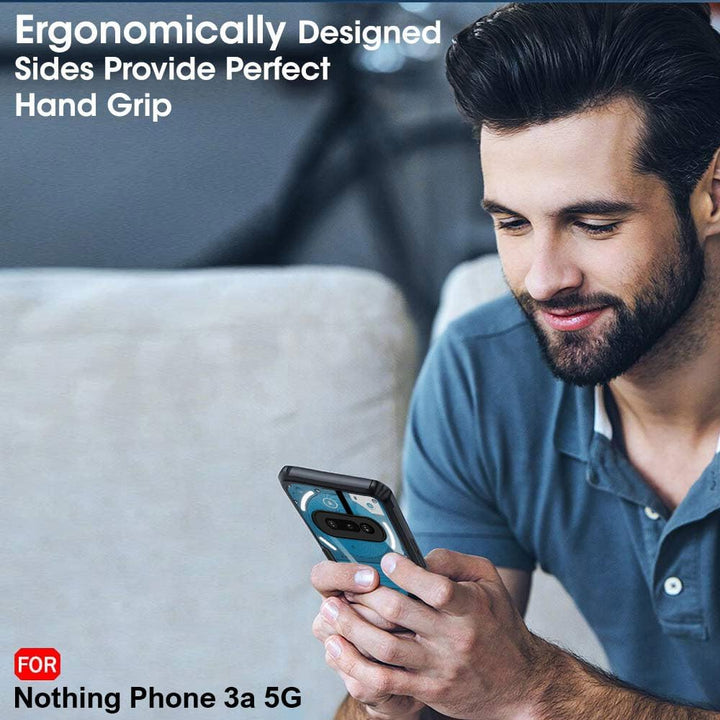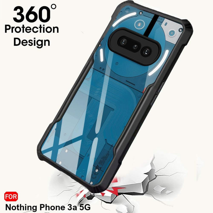 MOBILOVE Shockproof Crystal Clear Back Cover Case for Nothing Phone 3a 5G | 360 Degree Protection | Hybrid Soft PC Anti-Clear Gel TPU Bumper Case (Black)
