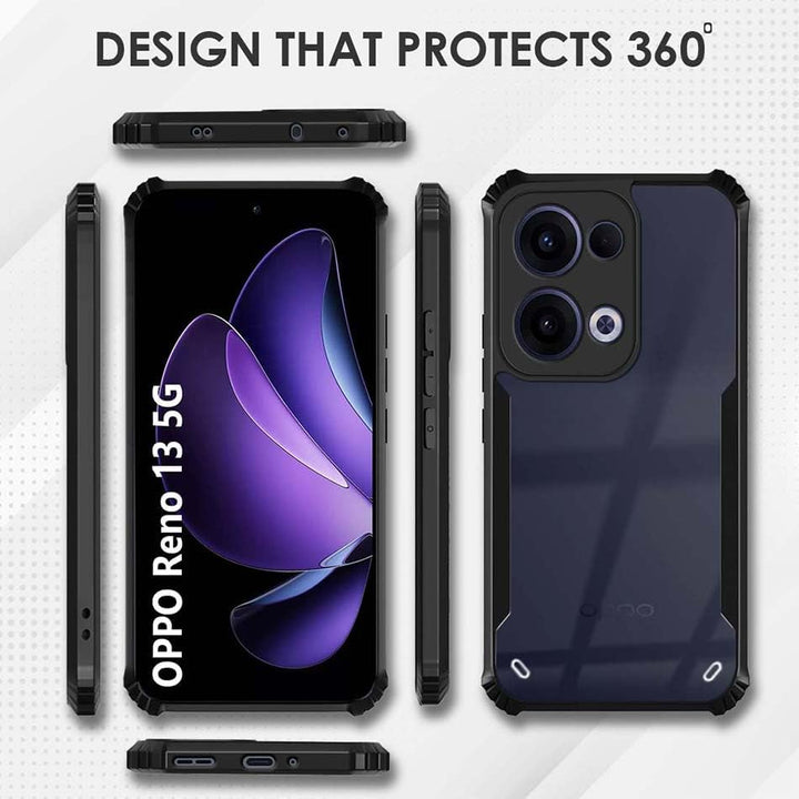 MOBILOVE Shockproof Crystal Clear Back Cover Case for Oppo Reno 13 5G | 360 Degree Protection | Hybrid Soft PC Anti-Clear Gel TPU Bumper Case (Black)