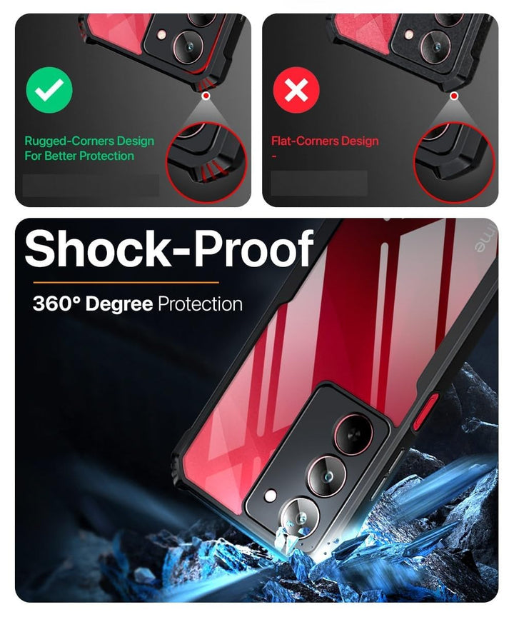 MOBILOVE Shockproof Crystal Clear Back Cover Case for Realme 14x 5G | Realme Narzo 80x | Realme P3x | 360 Degree Protection | Hybrid Soft PC Anti-Clear Gel TPU Bumper Case (Black)