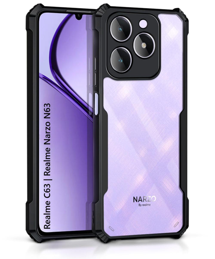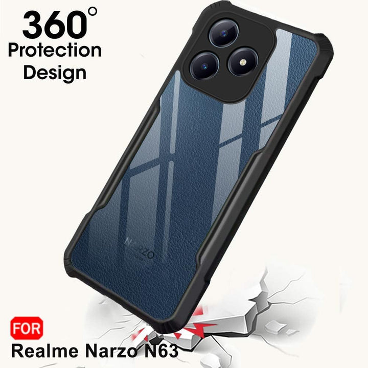 MOBILOVE Shockproof Crystal Clear Back Cover Case for Realme C63 | Realme Narzo N63 | 360 Degree Protection | Hybrid Soft PC Anti-Clear Gel TPU Bumper Case (Black)