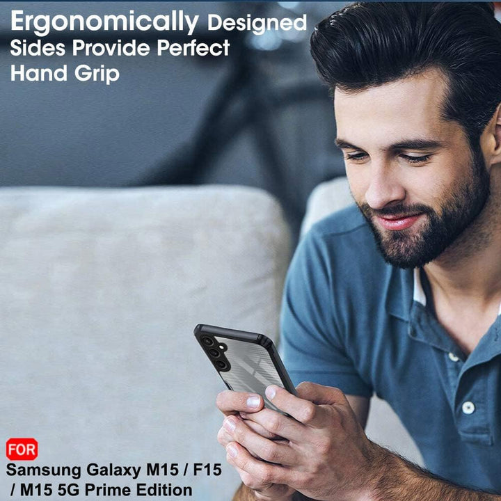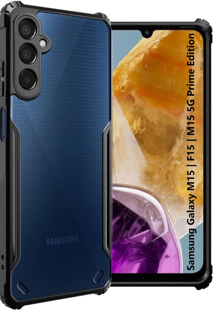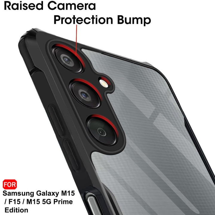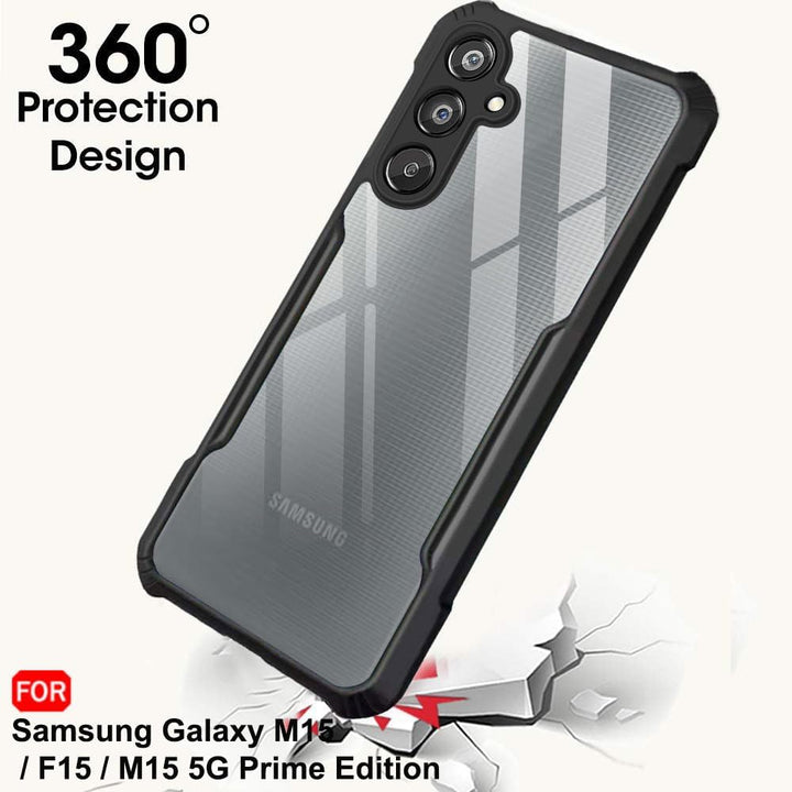 MOBILOVE Shockproof Crystal Clear Back Cover Case for Samsung Galaxy M15 | F15 | M15 5G Prime Edition | 360 Degree Protection | Hybrid Soft PC Anti Clear Gel TPU Bumper Case (Black)