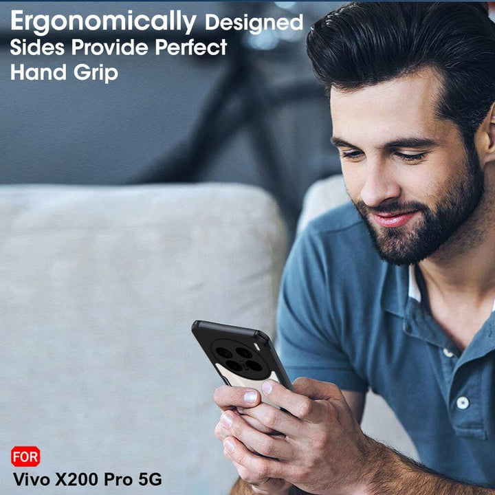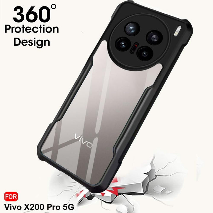 MOBILOVE Shockproof Crystal Clear Back Cover Case for Vivo X200 Pro 5G | 360 Degree Protection | Hybrid Soft PC Anti-Clear Gel TPU Bumper Case (Black)